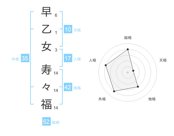 早乙女 寿々福さんの総格は52画の4点!