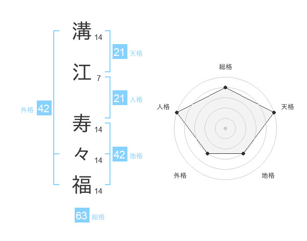 溝江 寿々福さんの総格は63画の4点!