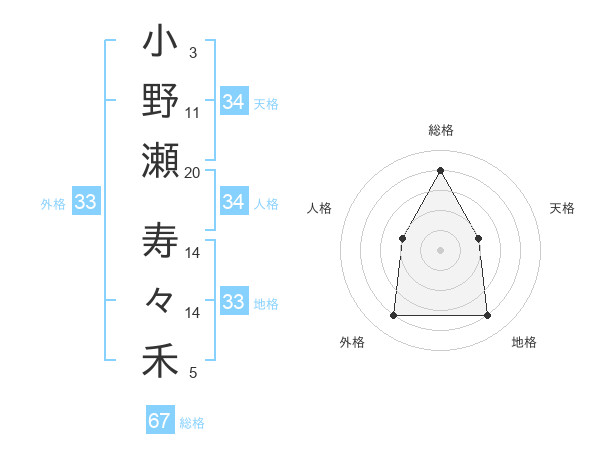 小野瀬 寿々禾さんを姓名の画数から五運を鑑定