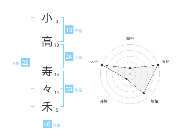 小高 寿々禾さんを姓名の画数から五運を鑑定