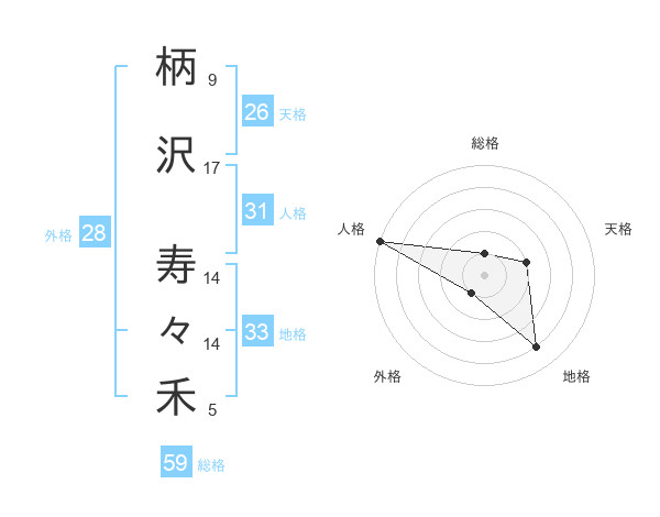 柄沢 寿々禾さんの総格は59画の1点!