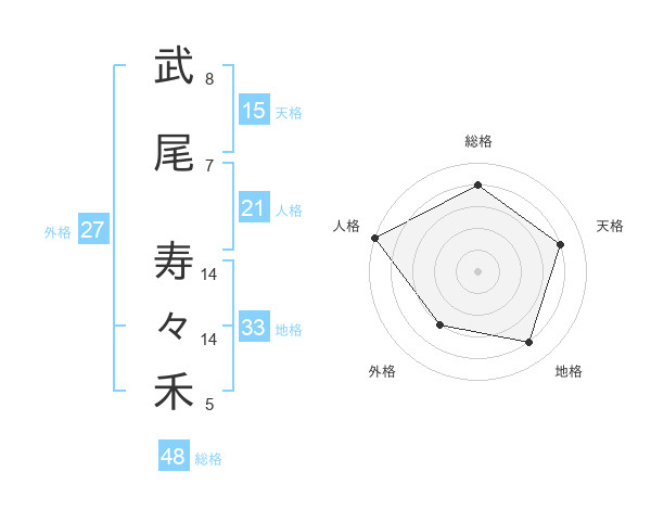 武尾 寿々禾さんの総格は48画の4点!