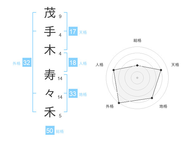 茂手木 寿々禾さんを姓名の画数から五運を鑑定