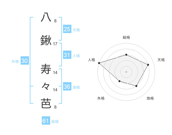 八鍬 寿々芭さんの総格は61画の3点!