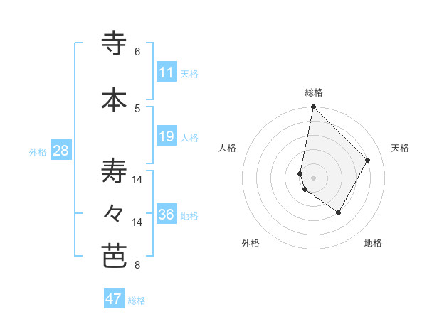 寺本 寿々芭さんの総格は47画の5点!