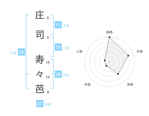 庄司 寿々芭さんを姓名の画数から五運を鑑定