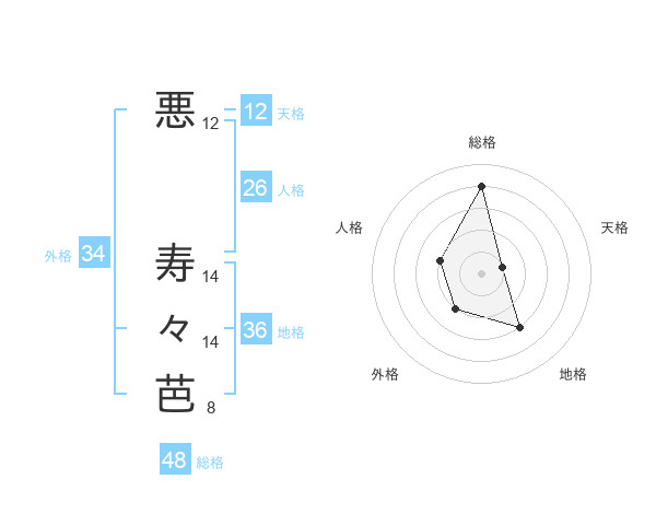 悪 寿々芭さんの総格は48画の4点!
