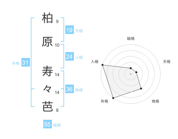 柏原 寿々芭さんを姓名の画数から五運を鑑定