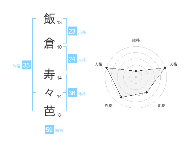 飯倉 寿々芭さんの総格は59画の1点!