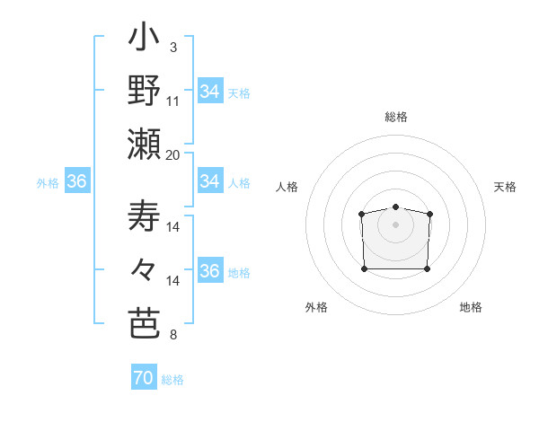 小野瀬 寿々芭さんを姓名の画数から五運を鑑定