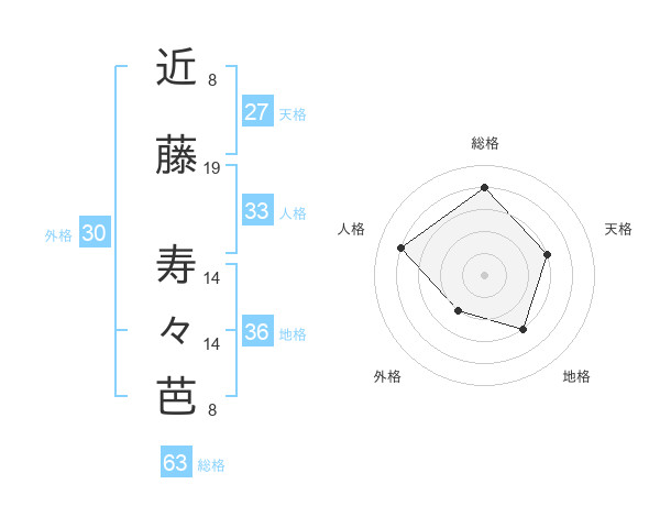 近藤 寿々芭さんの総格は63画の4点!