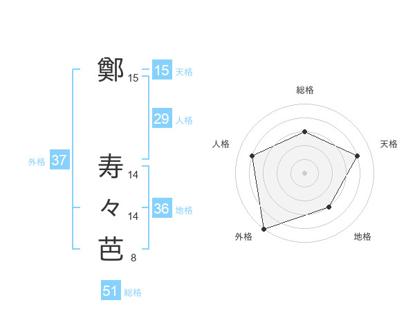 鄭 寿々芭さんの外格は37画の5点!