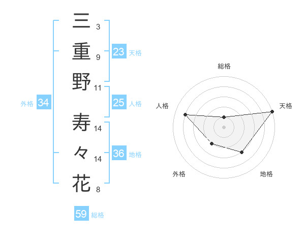 三重野 寿々花さんの総格は59画の1点!