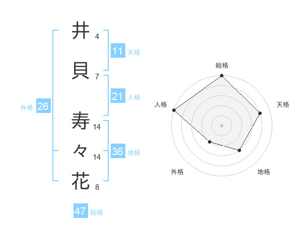 井貝 寿々花さんを姓名の画数から五運を鑑定
