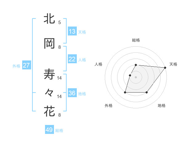 北岡 寿々花さんを姓名の画数から五運を鑑定
