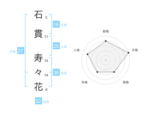 石貫 寿々花さんの総格は52画の4点!
