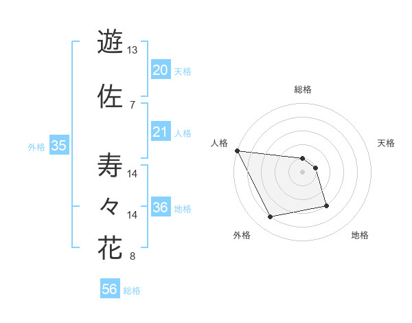 遊佐 寿々花さんを姓名の画数から五運を鑑定
