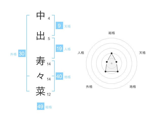 中出 寿々菜さんを姓名の画数から五運を鑑定
