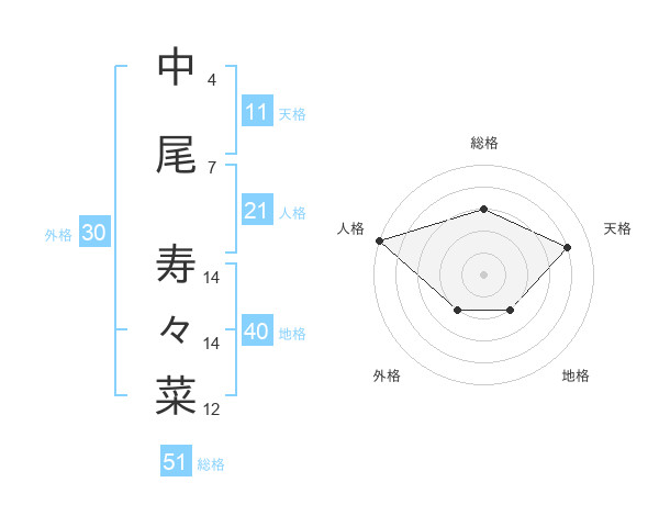 中尾 寿々菜さんを姓名の画数から五運を鑑定