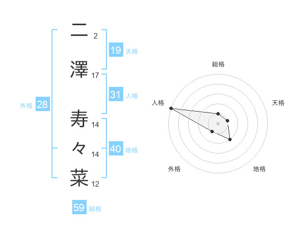 二澤 寿々菜さんの総格は59画の1点!