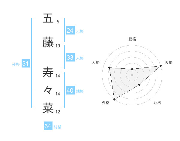五藤 寿々菜さんを姓名の画数から五運を鑑定