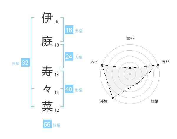 伊庭 寿々菜さんを姓名の画数から五運を鑑定