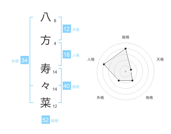 八方 寿々菜さんを姓名の画数から五運を鑑定