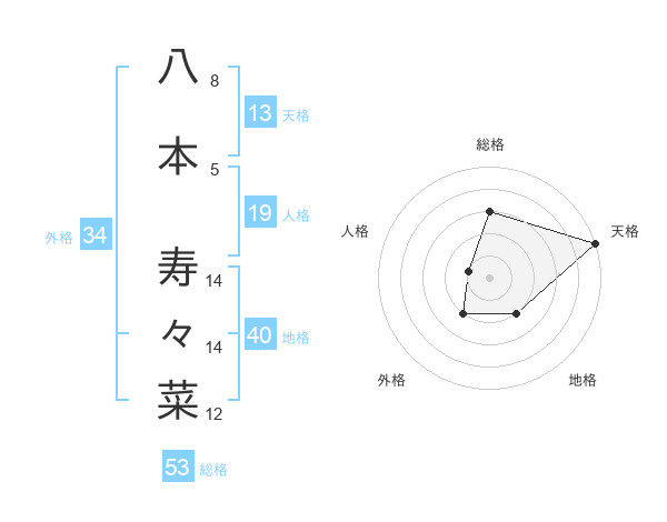 八本 寿々菜さんを姓名の画数から五運を鑑定