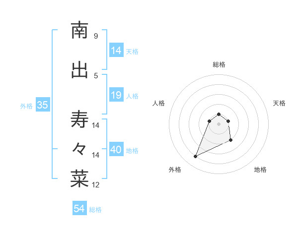 南出 寿々菜さんを姓名の画数から五運を鑑定