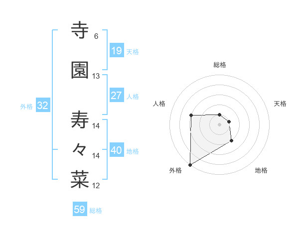 寺園 寿々菜さんを姓名の画数から五運を鑑定