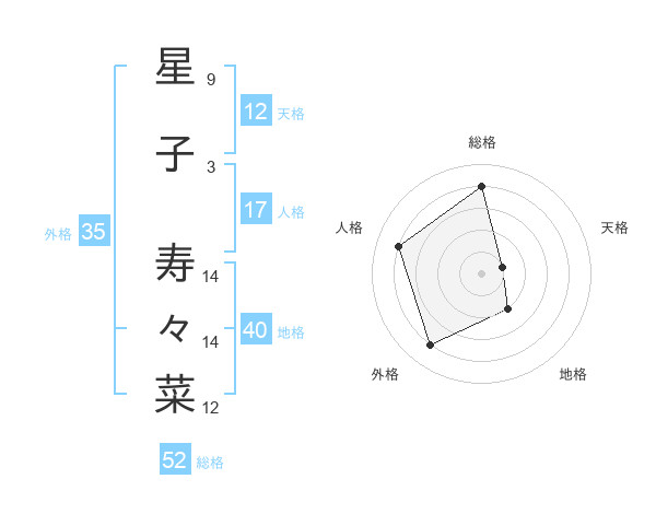 星子 寿々菜さんの総格は52画の4点!