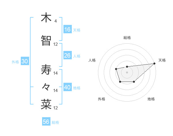 木智 寿々菜さんの天格は16画の5点!