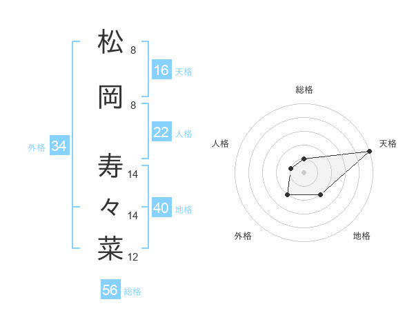 松岡 寿々菜さんを姓名の画数から五運を鑑定