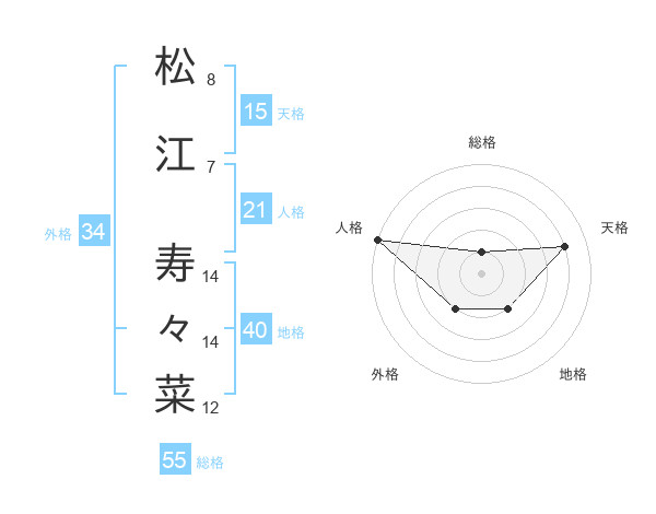 松江 寿々菜さんの総格は55画の1点!