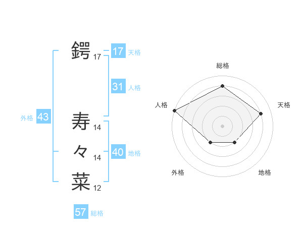 鍔 寿々菜さんの天格は17画の4点!