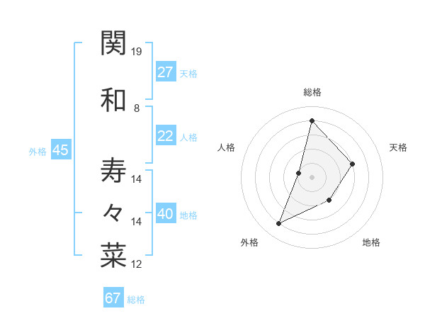 関和 寿々菜さんの総格は67画の4点!