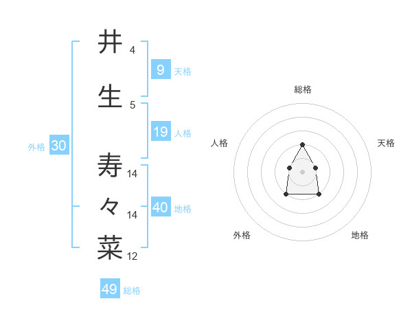 井生 寿々菜さんを姓名の画数から五運を鑑定