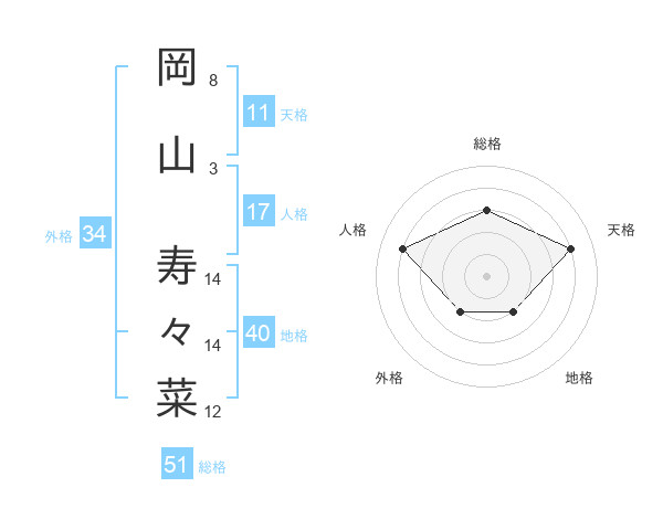 岡山 寿々菜さんを姓名の画数から五運を鑑定
