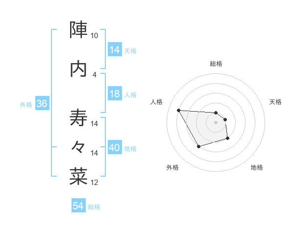 陣内 寿々菜さんを姓名の画数から五運を鑑定