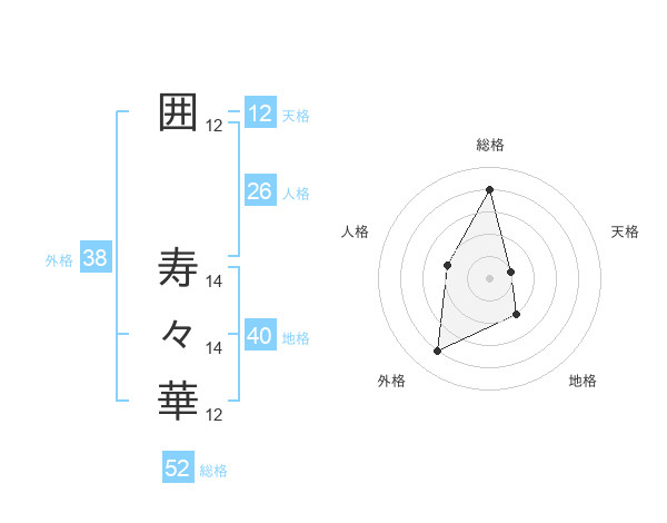 囲 寿々華さんの総格は52画の4点!
