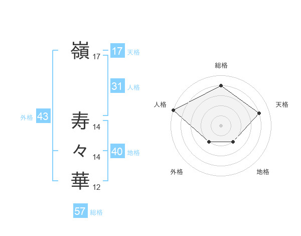 嶺 寿々華さんの天格は17画の4点!