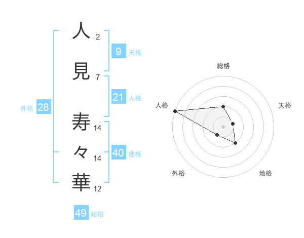 人見 寿々華さんの総格は49画の2点!
