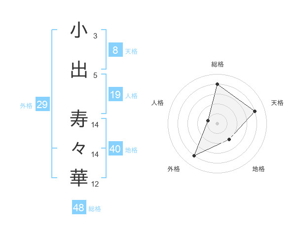 小出 寿々華さんの総格は48画の4点!