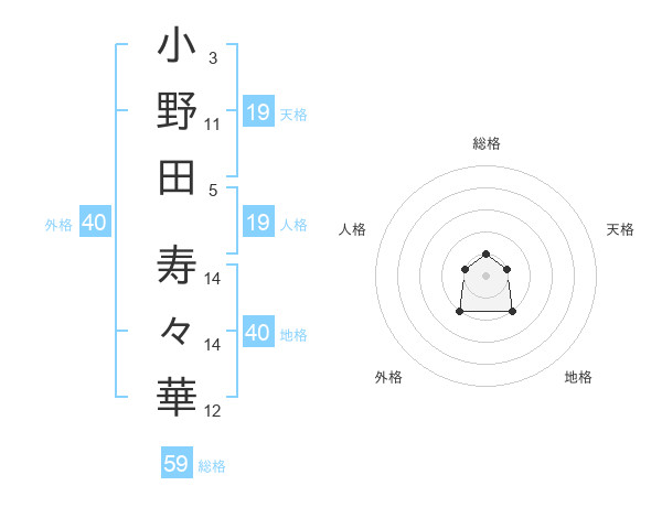 小野田 寿々華さんの総格は59画の1点!