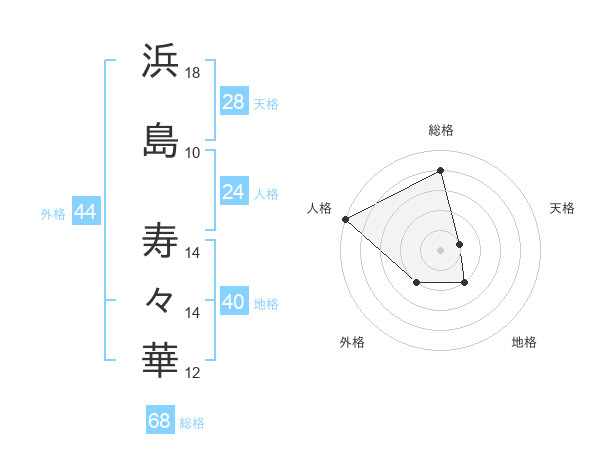 浜島 寿々華さんの総格は68画の4点!