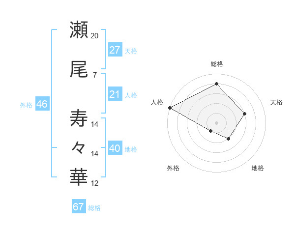 瀬尾 寿々華さんを姓名の画数から五運を鑑定