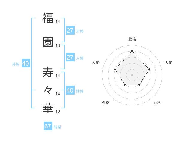 福園 寿々華さんの総格は67画の4点!