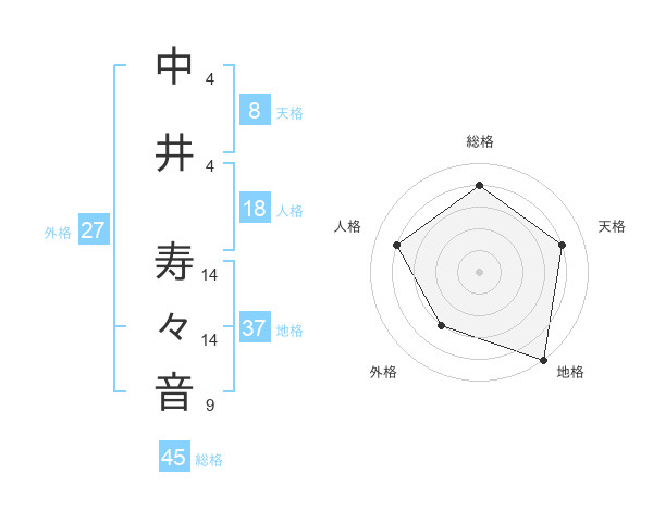 中井 寿々音さんを姓名の画数から五運を鑑定