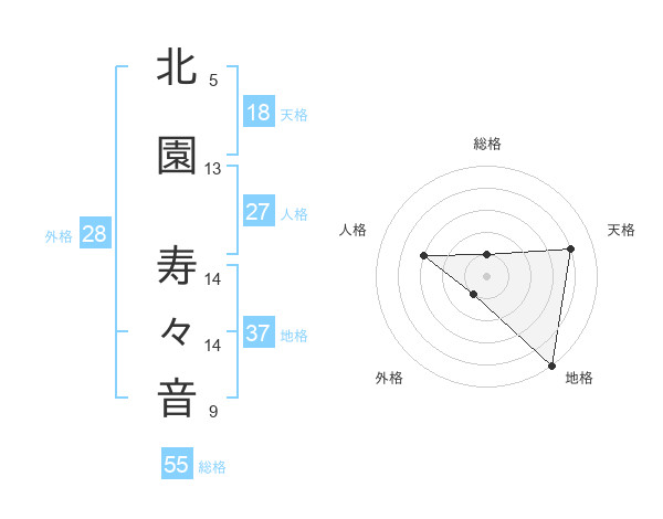 北園 寿々音さんを姓名の画数から五運を鑑定