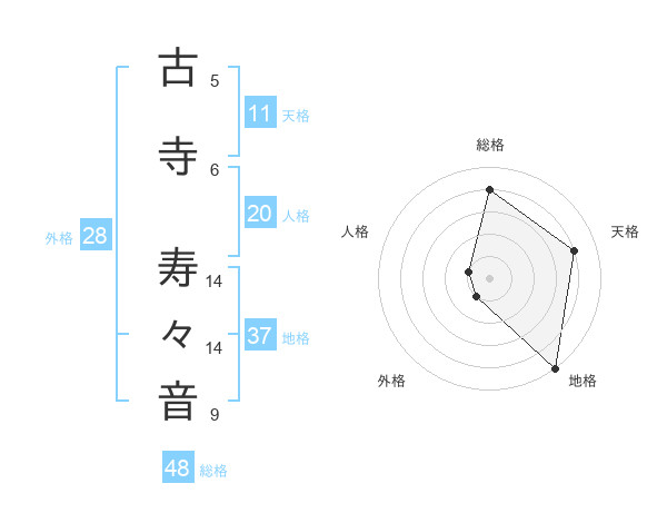 古寺 寿々音さんを姓名の画数から五運を鑑定